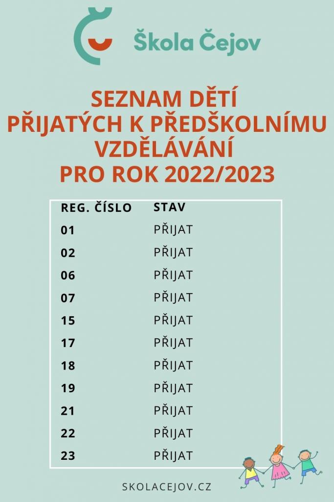 Seznam dětí přijatých k předškolnímu vzdělávání pro rok 2022/2023